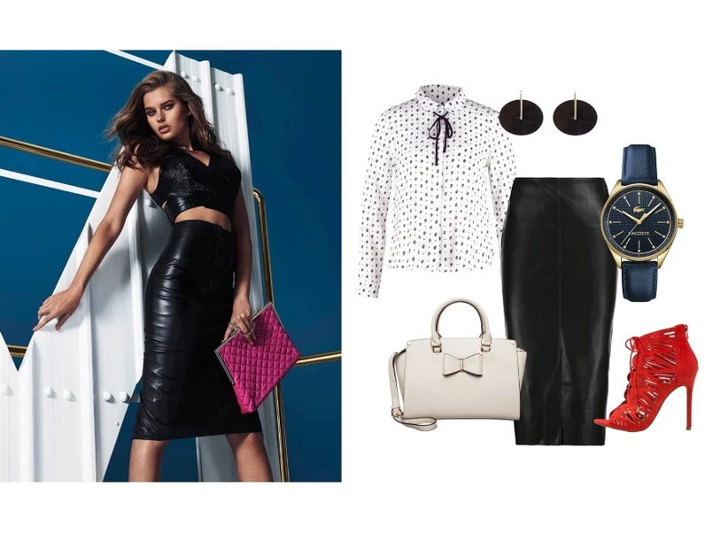 STYLIZACJE ze spódnicą ołówkową Spódnica – Lipsy 209 zł, naszyjnik – miss selfridge 69 zł, torebka – Missquided 119 zł, bluzka – Yas 209 zł, buty – Zign 339 zł, zegarek - Pepe Jeans 659 zł. / Media