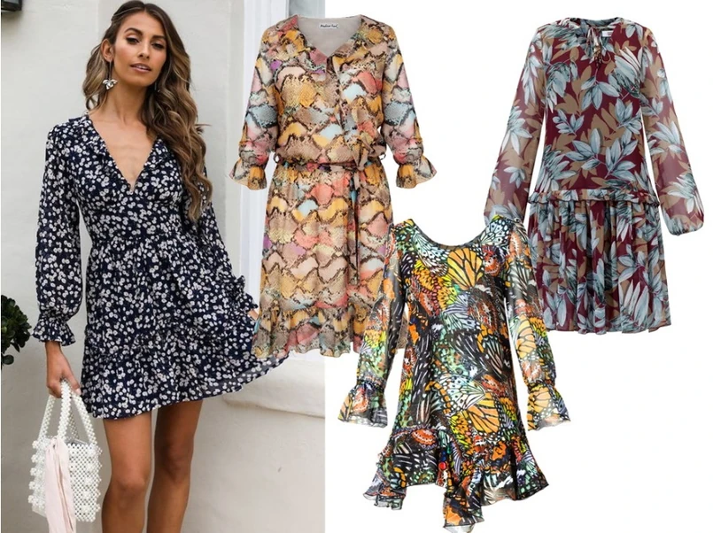 Kwiatowy motyw na sukience zawsze wygląda pięknie. Dodaje uroku i podkreśla dziewczęcy wygląd. Kobiety powinny go nosić, by uwydatnić swoją naturalność. NA ZDJĘCIU: sukienka z falbaną Midori Feminine Fashion/ midori.pl, niebieska sukienka COSEL/ cosel.moda, sukienka z pasem Midori Feminine Fashion/ midori.pl.