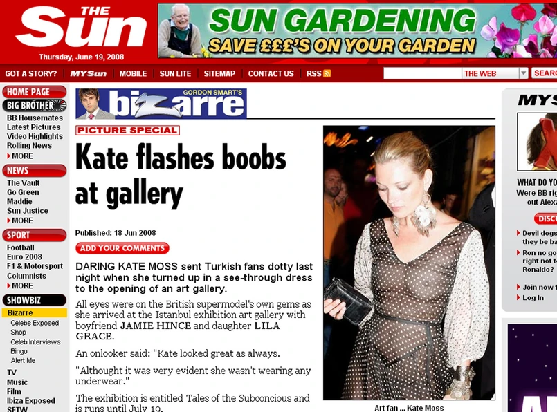 Nie wiadomo, czym kierowała się Kate Moss, wybierając strój na przechadzkę po Stambule. Jedno jest pewne - sukienka została zauważona. Długa kreacja w białe kropeczki była bowiem zupełnie prześwitująca. Przechodnie mogli więc dokładnie przestudiować wszystkie szczegóły anatomiczne ciała modelki. I sprawdzić, czy jej piersi i pośladki na żywo wyglądają tak samo, jak na zdjęciach w kolorowych magazynach.