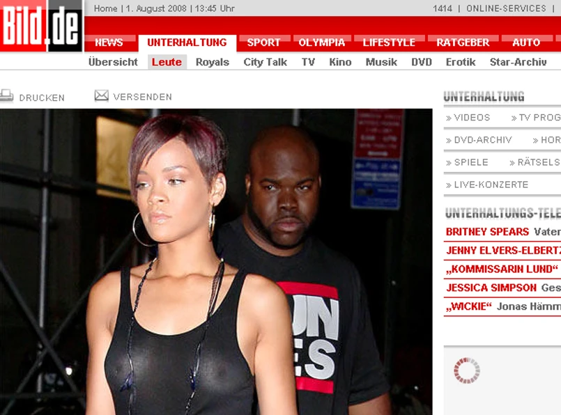 Gdy Rihanna postanowiła zabawić się w nocnym klubie, było już dość późno. Mimo to na dworze panował skwar. Termometry wskazywały 26 stopni. Być może dlatego seksowna piosenkarka z Barbadosu wskoczyła w skąpą sukienkę i zrezygnowała z włożenia staniczka. Tiulowa czarna góra odsłaniała więc ponętny biust gwiazdy, z kolei dół sukienki zakrywał jedynie pośladki.