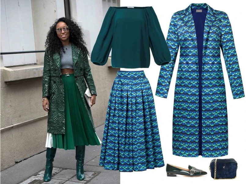 Od kilku sezonów bardzo modne jest połączenie długiej spódnicy i płaszcza. Taka kompozycja występuje często w tym samym wzorze lub kolorze. Nam spodobała się wariacja odcieni turkusowego błękitu i szmaragdu. NA ZDJĘCIU: bluzka - Cotton Club/cottonclub.pl, spódnica i płaszcz - Cosel/cosel.moda, buty, torebka - Menbur/menbur.pl.