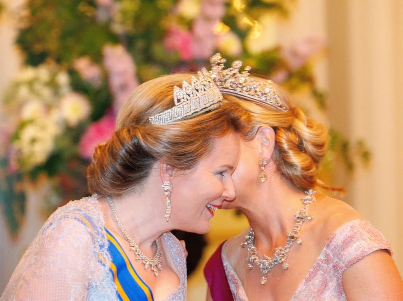 Maksyma i Matylda ozdobiły głowy tiarami. Na głowie Matyldy znalazła się tiara Dziewięciu Prowincji, prezent, jaki Belgowie podarowali królowej Astrydzie z okazji jej małżeństwa z królem Leopoldem III w 1926 roku.