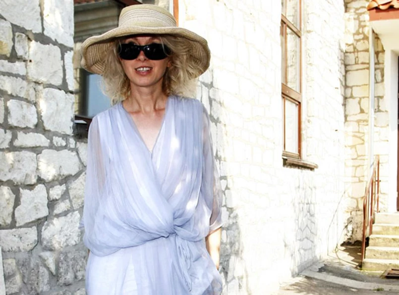 Gretkowska dała się złapać fotografom w zwiewnej, niebieskiej tunice, która może wzbudzać wiele kontrowersji. Na pierwszy rzut oka całość nie wygląda najlepiej, ale bliższe przyjrzenie się ciuszkowi pisarki pozwala na zmianę zdania. Otóż - paradoksalnie - całość się broni. Jak się okazuje, jasne dżinsy i błękitna bluzka nawet w takiej konfiguracji sprawdzają się w stu procentach. Jeśliby chcieć się do czegoś przyczepić, to może tylko do tego, że pani Gretkowskiej brakuje biżuterii, która skutecznie rozbiłaby tę bladość.