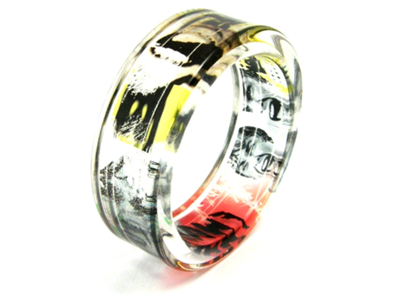 Bransoleta została wykonana z transparentnej żywicy oraz zatopionego wewnątrz wydruku. Do realizacji pomysłu użyte zostały kadry z filmu Alfreda Hitchcocka. To nie lada gratka dla wielbicielek kina i znakomity prezent dla najlepszej przyjaciółki.