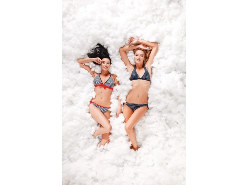 W tym sezonie w ofercie marki MOODO po raz pierwszy pojawiły się… kostiumy kąpielowe. Dominującymi deseniami są modne w tym sezonie kropki i paski w wielu letnich, energetycznych kolorach. Przewodzi linia marynistyczna, czyli zestawienia bieli, granatu i czerwieni. „Góry” kostiumów – w większości wiązane na szyi – przywodzą na myśl stylizację z lat 50. Z kolei osobne paski u „dołów” bikini są nawiązaniem do stylizacji lat 70. Kolekcja kostiumów Moodo to najnowsze trendy w bardzo dziewczęcym wydaniu. Oprócz ciekawych fasonów stroje zachęcają też przystępnymi cenami. Oba elementy kosztują niecałe 60 zł. Tego lata można zatem stylowo plażować za niewielką cenę.
