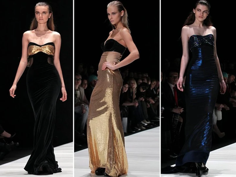 4 Alternatywą dla czerni i złota jest granat. Ozdobnym akcentem kreacji są połyskliwe tkaniny. Jak Wam się podoba kolekcja?