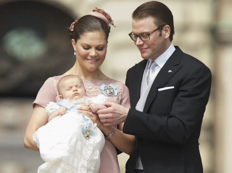 Stylowi rodzice i dziecko: królewski chrzest córki księżniczki Victorii