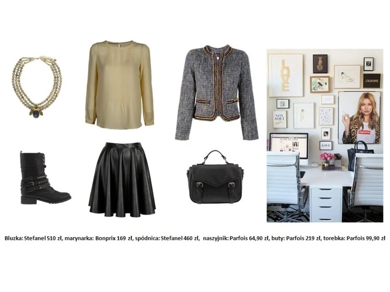 Jesienny strój do pracy wcale nie musi być nudny! Warto jednak zadbać o to, aby było nie tylko modnie, ale i ciepło i wygodnie. Buty - obowiązkowo kozaki, biker boots lub botki na szerokim obcasie. Do tego jesienne kolory: beż, brąz, czerń, bordo i ciemna zieleń. Romantyczną sukienkę zneutralizuje klasyczna marynarka. Skórzana spódnica - czemu nie? W zestawieniu z elegancką koszulą i marynarką idealnie nada się do biura. Jedwabne czarne spodnie i koszula w printy - zestawienie proste, ale jakże efektowne! Zapraszamy do galerii z inspiracjami strojów do pracy.