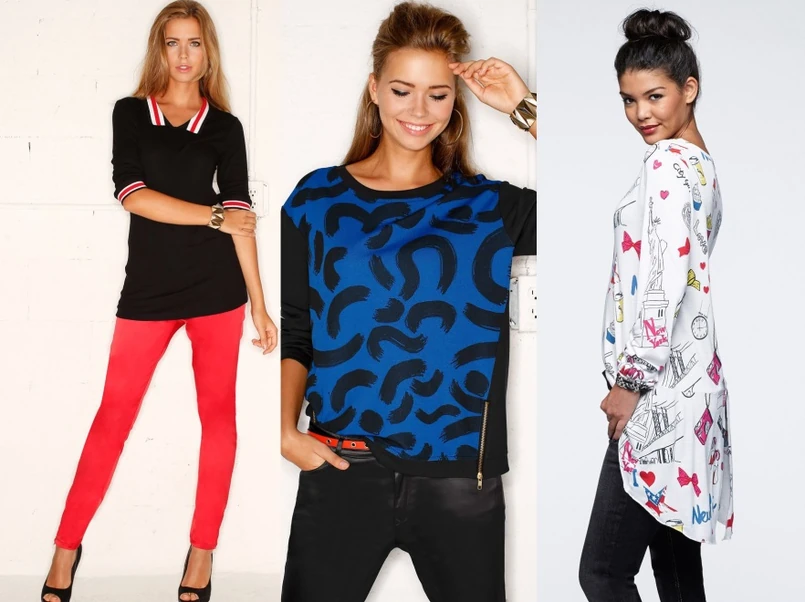 3 Arty Party – nadruki w stylu pop art i sportowa elegancja. Geometryczne wzory, komiksowe nadruki i nasycone kolory to propozycja dla odważnych. W linii dominują ostre czerwienie, głęboki granat i czerń. Przełam elegancki look, zakładając do tuniki lub sukienki… getry rodem z amerykańskiego collegu