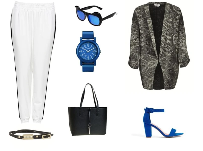 Zegarek Timex Buty Kari 89,90 zł Torebka Glitter 129,90 zł Spodnie Royal Collection/ CV 239 zł Bransoletka Zalando.pl/Alexander McQueen 199 zł Okulary Glitter 39,90 zł Marynarka Day / Zalando.pl 1409 zł