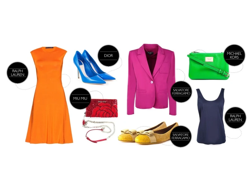 3 Pomarańcz świetnie skomponuje się z kolorem niebieskim, dlatego do eleganckiej, ale jednocześnie delikatnej sukienki projektu Ralpha Laurena, sugerujemy mocny akcent w postaci kobaltowych szpilek Diora. W takim zestawieniu idealnie zaprezentujesz się podczas wieczornej, wiosennej imprezy.