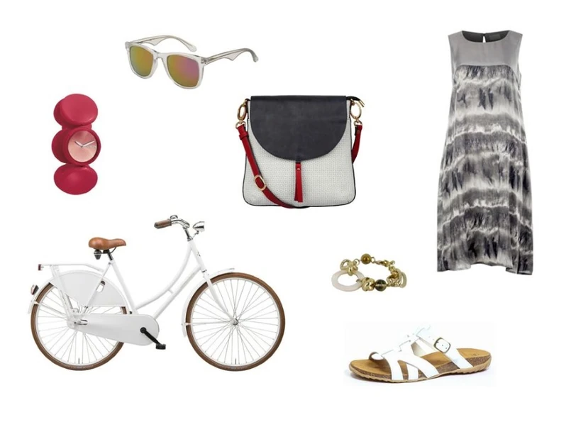 1 Rower MBM VERA (elektro.pl), Torebka - ANTBAG BY ANIA (antbags.pl), Bluzka – Bialcon (bialcon.pl), Okulary – Chloe (safilo.pl), Spodenki – Midori (midori.pl), Buty – Caprice (caprice.pl), Bransoletka – Menbur (menbur.com)