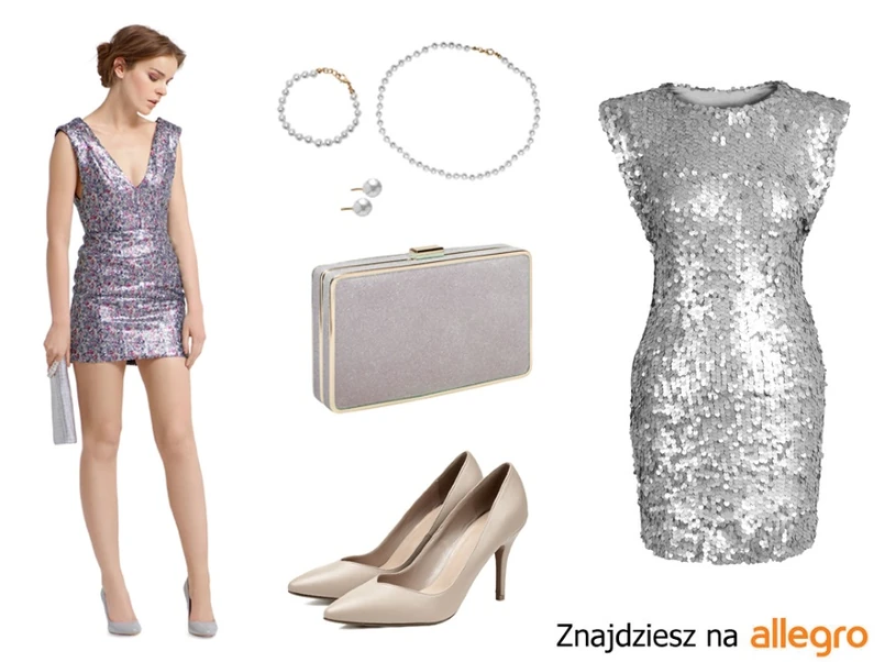 3 Poczuj się jak królowa balu! Do srebrnej cekinowej sukienki dobierz wytworny biały płaszcz. Taka pełna przepychu stylizacja nie wymaga wielu dodatków. Błyszcząca torebka i szpilki podkreślą imprezowy charakter i nadadzą całości kobiecego szyku. Postaw na subtelny akcent w postaci delikatnego naszyjnika – pięknie wyeksponuje smukłą szyję i dekolt.