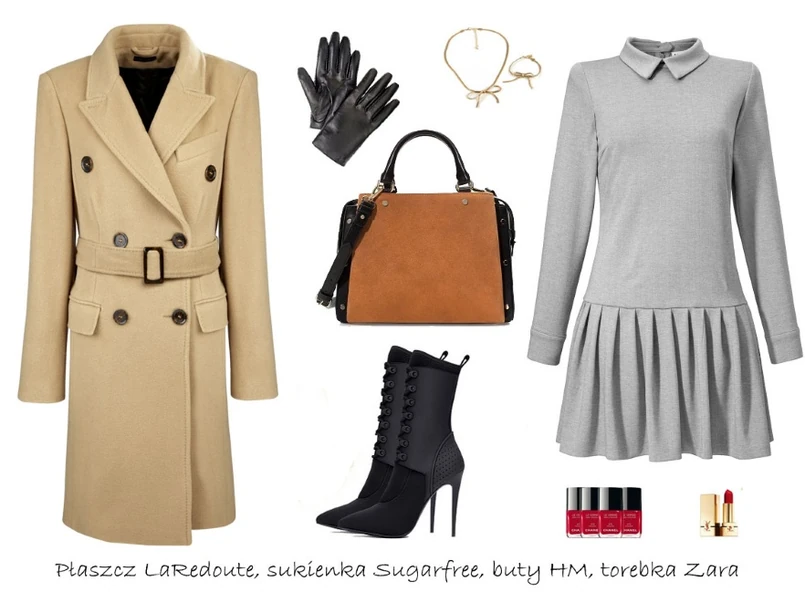 W okresie, w którym mamy jeszcze chłodniejsze dni świetnie sprawdzi się trencz ze stosunkowo cienkiej wełny parzonej. Klasyczny dwurzędowy trencz w kolorze beżowym stworzy idealne połączenie z czarnymi lub brązowymi dodatkami. Jeśli chcesz przełamać nieco elegancję możesz pozwolić sobie na szarą sukienkę w stylu szkolnym i wysokie botki.