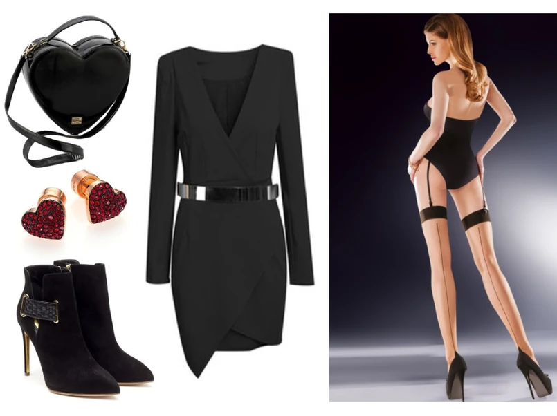 2 KLASYCZNA Jeśli cenicie klasykę zdecydujcie się na sprawdzone rozwiązanie w postaci małej, czarnej sukienki i szpilek, które przykują wzrok nie tylko Waszego mężczyzny. Klasyczny zestaw daje wiele możliwości jeśli chodzi o kolorowe dodatki. Warto więc zaszaleć i podgrzać atmosferę zmysłowymi elementami. Jeśli chodzi o rajstopy, to wybierzcie modele pończoch z paskiem z tyłu nogi, które optycznie wydłużą całą sylwetkę.