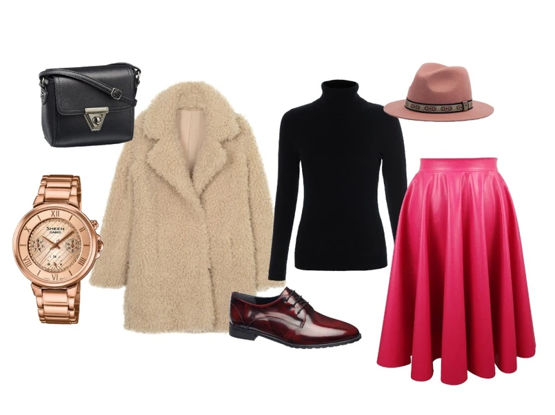1 Koszula – Top Secret 59,99 zł, szalik – Mood 49,99 zł, buty – CCC Lasocki 279,99 zł, torebka – Pepe Jeans 209 zł, dżinsy - Greenpoint 79,99 zł, płaszcz – Carry 289,99 zł, czapka – Taranko 119 zł, zegarek – Lorus 419 zł