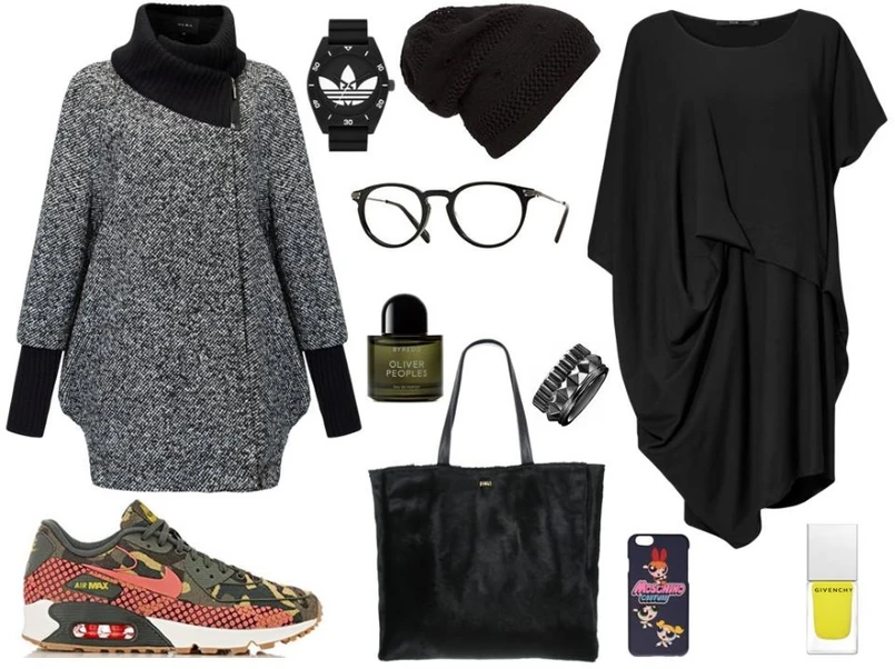 Płaszcz- Hera Moda Studio/hera.com.pl, tunika- TOK/tok.net.pl, torebka- Antbag by Ania/antbags.pl, czapka- Tkmaxx/tkmaxx.pl, obudowa na telefon- Tkmaxx/tkmaxx.pl, zegarek- Tkmaxx/tkmaxx.pl, okulary- Tkmaxx/tkmaxx.pl, bransoletka- Tkmaxx/tkmaxx.pl