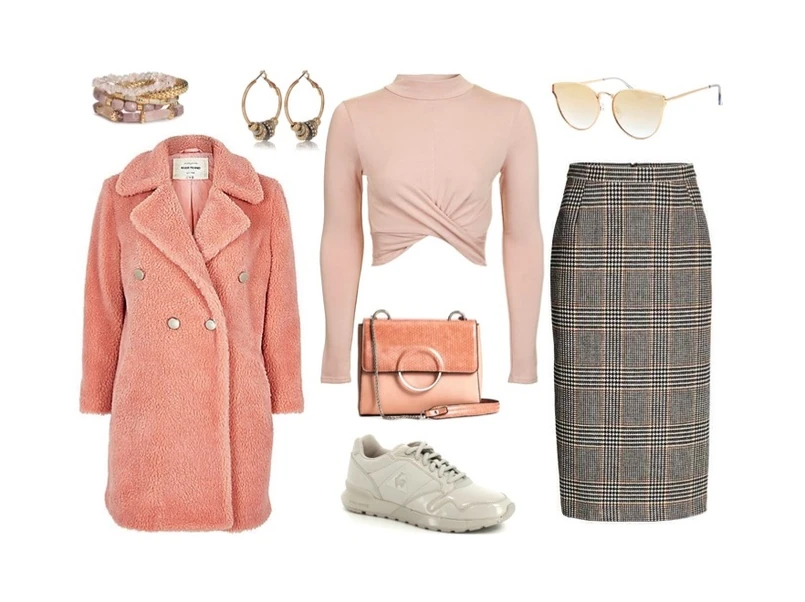 Futro: River Island, top: Topshop, spódnica: H&M, torba: H&M, buty: Le Coq Sportif, okulary: Quay, kolczyki: River Island, bransoletka: H&M