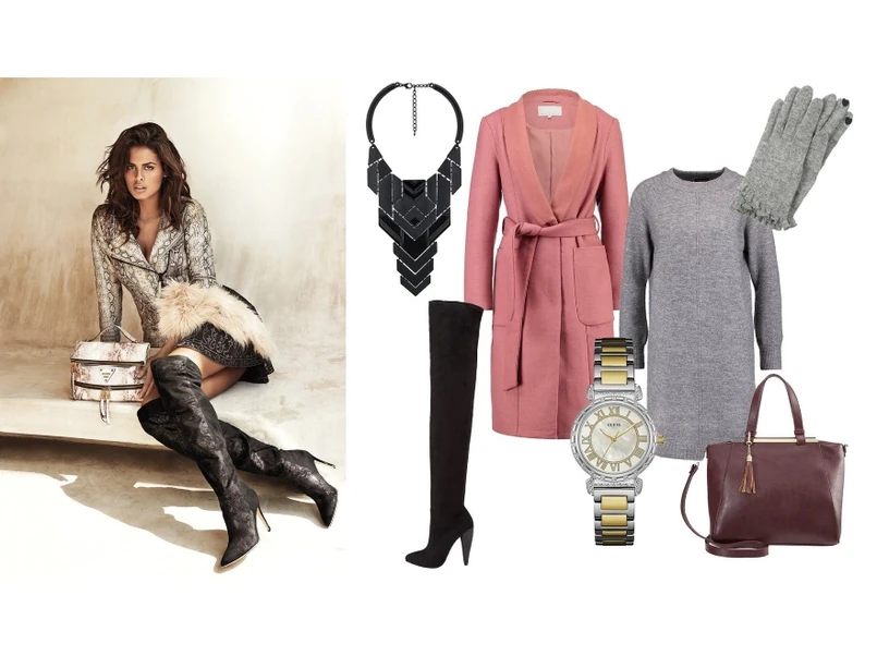 4 Muszkieterki – Even and Odd 299 zł, torba – Kiomi 379 zł, naszyjnik – Miss Selfridge 64 zł, sukienka – Only 209 zł, zegarek – Casio Retro 235 zł, płaszcz – Dorothy Perkins 379 zł, rękawiczki – Even and Odd 69 zł