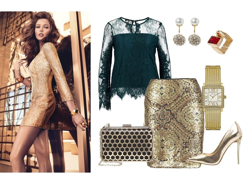 4 Spódnica – Louche 249 zł, naszyjnik – Pieces 54 zł, bluzka – Taranko 239 zł, bransoletka – Ted Baker 179 zł, zegarek – Lorus 309 zł, szpilki – Buffalo 429 zł, torebka – GUESS 339 zł.