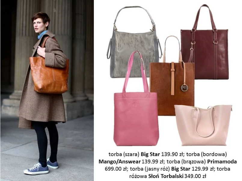 1 Mocną pozycję na podium trendów wśród torebek xxl mają skórzane worki lub te przypominające puchowe kurtki, a także te wykonane z wężowej skóry.