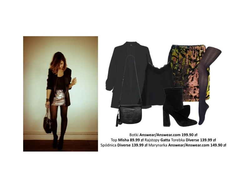 3 Total Look w czerni nie brzmi dla Ciebie za to zbyt imprezowo? Pozory mylą! Klasyczna czerń to zawsze dobry wybór. Błysku, w prosty sposób możemy dodać poprzez wybranie cekinowej, mieniącej się spódnicy albo torebki z holograficznym połyskiem.