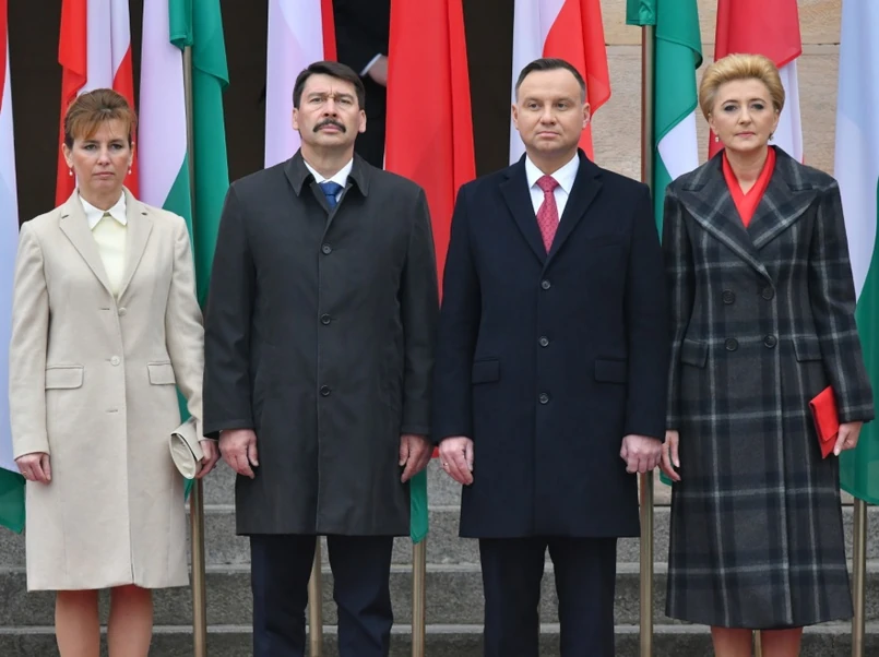 Na powitanie słaby tartan, a na mecz nieziemskie spodnium! W takich strojach Agata Duda podejmowała pierwszą parę Węgier. FOTO