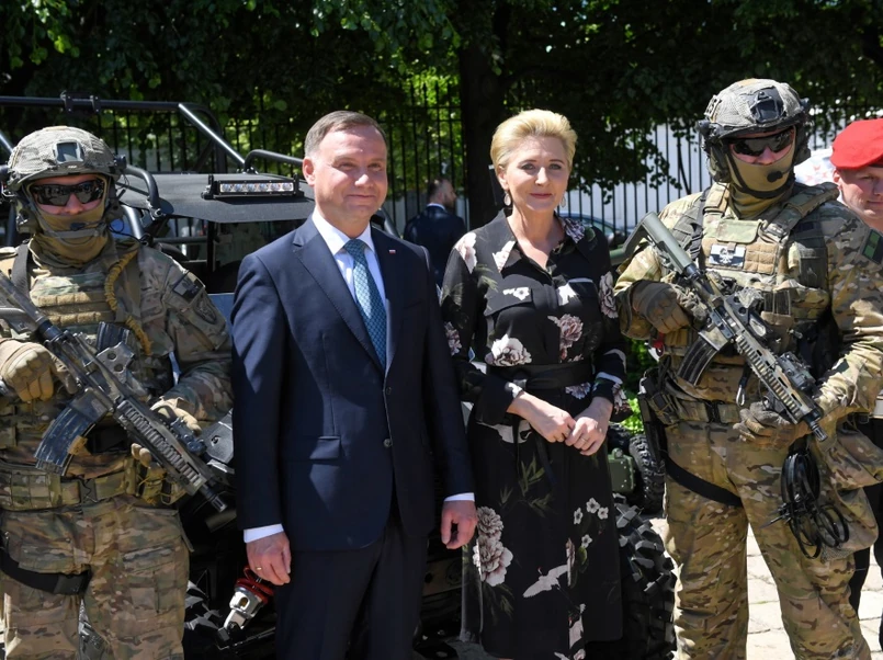 Przytłaczająca jak rzadko kiedy. Agata Duda wybitnie nie dostosowała stylizacji do pogody. FOTO