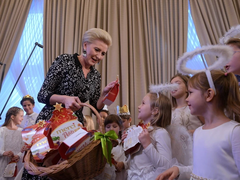 2 ... zestawiła z kozakami. Utrzymana w stonowanych kolorach stylizacja wyglądała świetnie i była bardzo ciekawą interpretacją najmodniejszego trendu sezonu, czyli połączenia lekkiej - nieco romantycznej - długiej sukienki i zimowych butów. Choć pierwsza dama zwykle nie czerpie z aktualnych trendów tak dosłownie, ta inspiracja była bardzo udana - również ze względu na dopasowanie stylu do okazji. Było elegancko, ale jednocześnie niezobowiązująco i kobieco. Brawo!