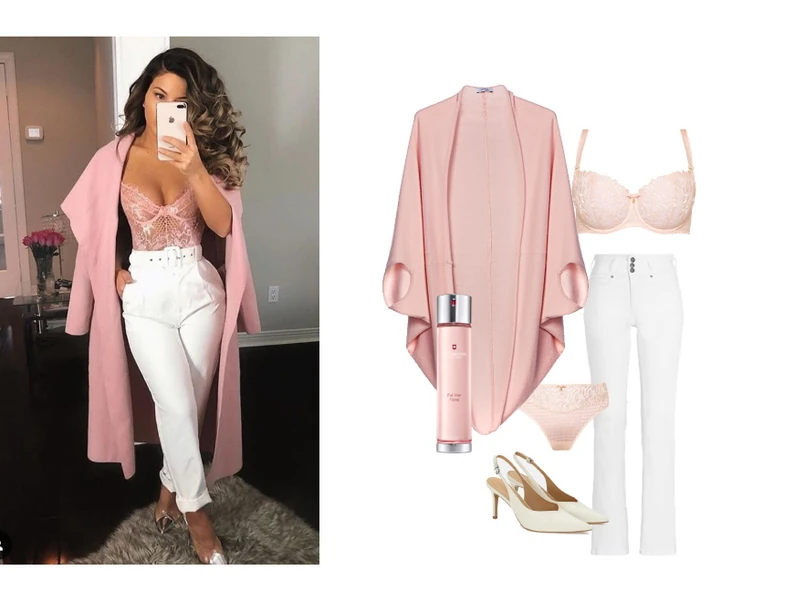 1/5 BRUNCH TIME. Pogoda na zewnątrz sprzyja ponownemu przesiadywaniu w ogródkach restauracyjnych. Białe spodnie łatwiej stylizować w lato - dobierz same jasne kolory, jak róż i beż. Poranki potrafią być chłodne, warto narzucić miękki kardigan. NA ZDJĘCIU: Bielizna: Samanta, 199 zł, 109 zł; Kardigan: Patrizia Aryton: wzór; Spodnie: Cellbes, 189 zł; Buty: Kazar: 349 zł; Perfumy: Victorinox, 240 zł.