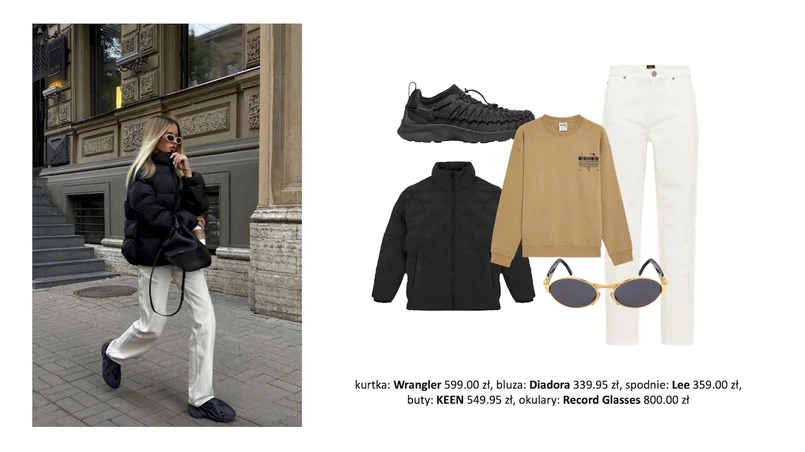 1/3 Grudzień kojarzy się przede wszystkim ze świętami, ale oprócz eleganckich stylizacji warto mieć w szafie wygodny zestaw na co dzień. Stawiając na jasne jeansowe spodnie, beżową bluzę, czarną grubą kurtkę i sportowe buty, można mieć pewność, że niestraszna będzie nawet najniższa temperatura.