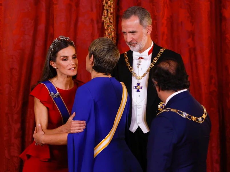 Spotykając się z królową Letycją, warto mieć na uwadze fakt, że doskonały gust i dbałość o stylizacyjne detale to jej znaki rozpoznawcze. Krótko mówiąc: będąc kobietą, przy niej naprawdę trzeba się postarać, aby dobrze wypaść. Oceniając stylizację Veroniki Alcocer, trzeba jednak powiedzieć wprost: bez względu na to, obok kogo by stanęła w asymetrycznej sukni, wyglądałaby źle…