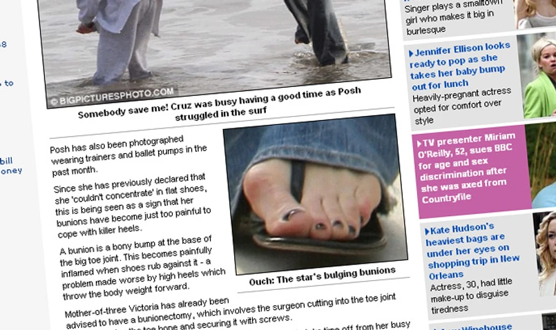 Victoria jest zmuszona regularnie robić okłady na obolałe stopy, a lekarze kategorycznie zabronili jej noszenia szpilek. Spacer nad brzegiem morza w klapkach na płaskiej podeszwie pewnie przyniósł ulgę obolałej celebrytce. Jednak Victoria, sfotografowana na jednej z plaż Pacyfiku, nawet długimi nogawkami dżinsów nie mogła ukryć powykrzywianych stóp.