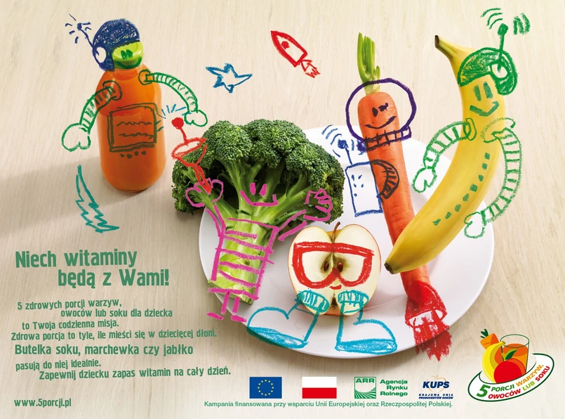 To musi się zmienić. Całe szczęście ruszył program społeczny "5 porcji warzyw, owoców i soków". To zachęta do zmiany diety na zdrowszą i tym samym lepszą. Pomysł bazuje na rekomendacjach ekspertów i dietetyków, którzy uważają, że każdy z nas powinien spożywać 5 owocowo-warzywnych porcji dziennie. Dlaczego? Bo nasza dieta nie jest wystarczająco bogata w witaminy pochodzące z naturalnych źródeł.