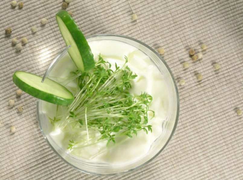 Polecamy też ogórkowy chłodnik, bardzo prosty do wykonania. Rozgnieć ząbek czosnku, dodaj do niego starty na dużych oczkach tarki ogórek, razem ze skórką, posyp solą i zostaw aż puści sok. Potem dodaj gęsty, grecki jogurt, wodę mineralną według potrzeb i odrobinę soku z cytryny. Do smaku sól i świeżo mielony pieprz. Spożywaj z grzankami lub świeżą bagietką, jak wolisz.