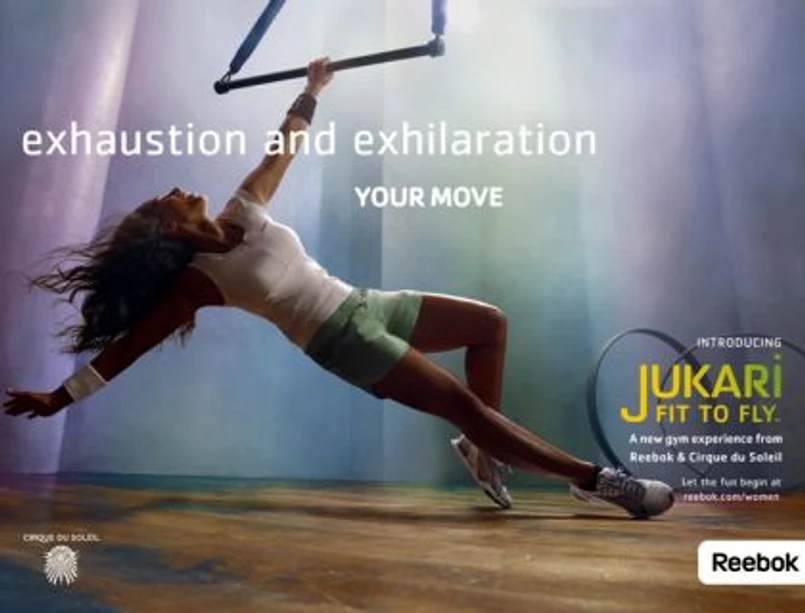 O czym mowa? O JUKARI Fit to Fly - nowym zestawie ćwiczeń, który jest efektem współpracy firmy Reebok z Cirque du Soleil – uznaną na świecie firmą z branży rozrywki. Do ćwiczeń używa się tu urządzenia o nazwie FlySet, które składa się z mocnej, potrójnie skręconej liny umocowanej do sufitu z punktem obrotu o 360 stopni na regulowanej wysokości, z dwoma pętlami. W pętle wkłada się FlyBar - pokryty neoprenem stalowy pręt ważący 2 kg, który można umieszczać na różnej wysokości, tworząc przyrząd, który wzmacnia i wysmukla ciało. Ćwiczący odnosi wrażenie podobne do latania. Przy użyciu tego urządzenia można wykonać godzinny zestaw ćwiczeń dla całego ciała, obejmujący ćwiczenia aerobowe, siłowe, równowagi i mięśni brzucha.