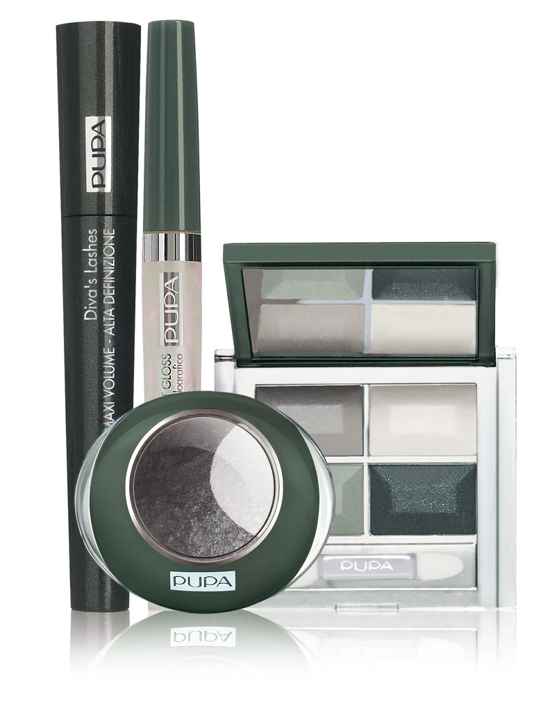 Jesienna kobieta według marki Pupa jest tajemnicza i delikatna, ale nie pozbawiona seksapilu. Oczy podkreśla mocnymi, głębokimi zieleniami, które łączy z opalizującymi rozświetlającymi kolorami. Jej usta skrzą się różnokolorowymi refleksami.