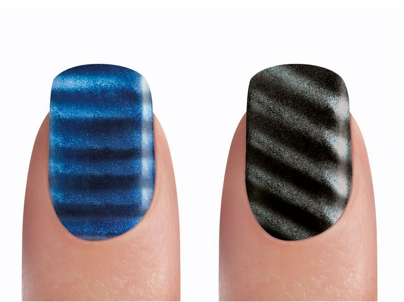 3. Natychmiast po nałożeniu lakieru zbliżyć magnes do paznokcia (nie dotykając go)