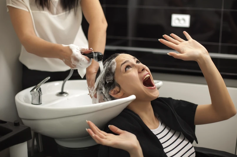 Klientka przychodzi na farbowanie włosów ze świeżo umytymi włosami, mimo że fryzjer kolejny raz prosił ją, aby tego nie robiła. Na nieumytych włosach lepiej wchłania się farba i to jest ważniejsze dla fryzjera niż to, że włosy klientki pachną najnowszym szamponem.