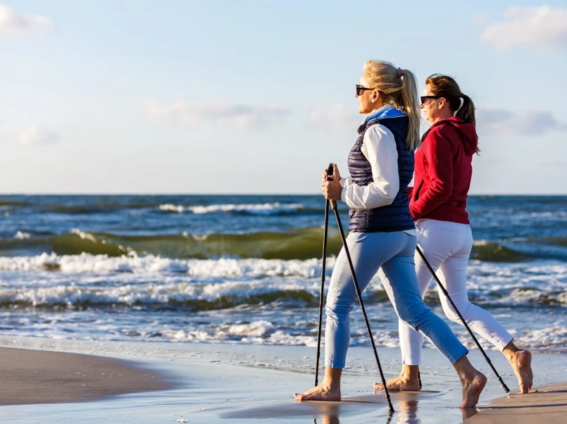 - Jednym z pomysłów są piesze wycieczki, które można dopasować do swoich możliwości: w zależności od naszej kondycji mamy do wyboru trasy dłuższe i krótsze. To mogą być również wolniejsze spacery, dzięki którym nie tylko dbamy o kręgosłup, ale również miło spędzamy czas, chodząc np. brzegiem morza czy po górskich terenach. Do spacerów warto również dobrać kijki, dzięki którym angażujemy do pracy całe nasze ciało i skutecznie odciążamy stawy – przekonuje ekspert.