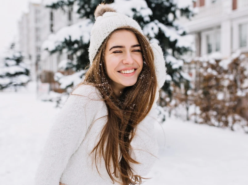 W pierwszej kolejności należy zadbać o ochronę włosów przed zimnem. Cały nasz organizm jest atakowany przez chłód, także włosy, dlatego niezbędna jest noszenie odpowiedniego nakrycia głowy. Istotny jest jednak prawidłowy jego wybór, gdyż ma to wpływ na stan naszej skóry głowy i włosów. Wybierając za ciepłą czapkę, przegrzewamy skórę głowy. W efekcie gruczoły łojowe będą pracować zbyt intensywnie, co przyczyni się do nadmiernego wydzielania łoju i może prowadzić do powstania łojotoku. Z kolei, jeśli wybierzemy zbyt cienką czapkę, to w mroźne dni nie zabezpieczy ona wystarczająco głowy przed utratą ciepła. Optymalnym wyborem na zimę będą czapki wełniane, w których głowa się nie przegrzewa, a gruczoły łojowe pracują prawidłowo.