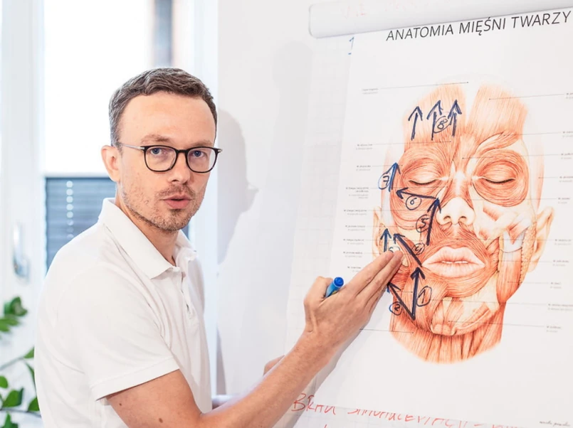 - Pracując podczas wykonywania masażu na głęboko położnych mięśniach twarzy, możemy poprawić jej owal, niwelować obrzęki i opuchliznę, zmniejszać widoczność bruzd oraz zmarszczek mimicznych. Wiedząc, jak przebiega proces starzenia, można dostosować zabieg do indywidualnych potrzeb i do budowy anatomicznej twarzy. Trzeba też zdawać sobie sprawę, że starsza twarz ma inne proporcje niż młoda i należy to wziąć pod uwagę przy zabiegu terapii manualnej – dodaje Witold Pyrkosz.