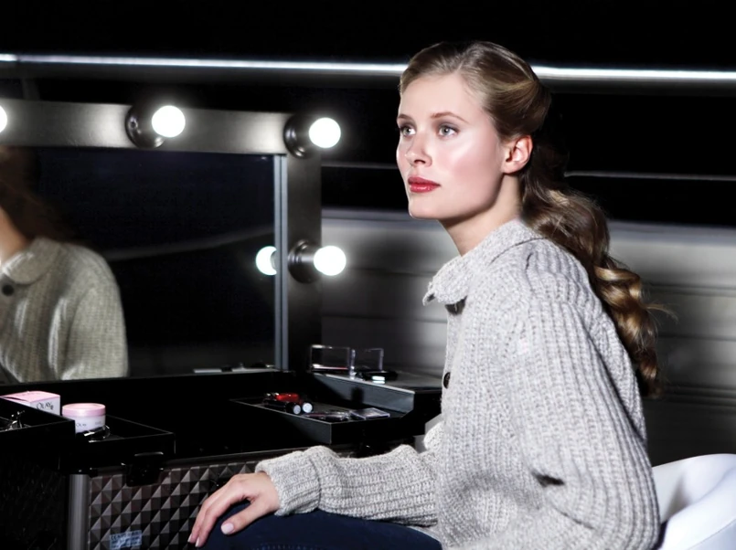 Nieskazitelnie gładka twarz Julii Pietruchy w reklamie kosmetyków