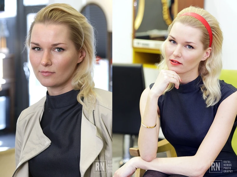 1 Włosy modelki po umyciu zostały spryskane odżywką KMS California z linii FreeShape, która chroni je przed wysoką temperaturą podczas stylizacji.