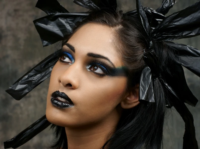 1 Żeby wyglądać tak jak modelka na zdjęciu, należy pomalować twarz, szyję i okolice dekoltu białą farbką do ciała, a zwykły makijaż oczu (czarna kreska i tusz) delikatnie rozmazać i pozwolić mu spłynąć. Na ustach króluje oczywiście czarna szminka. Codzienną fryzurę można ozdobić kolorowymi pasemkami - do ich wykonania idealnie nadaje się kolorowy spray do włosów.