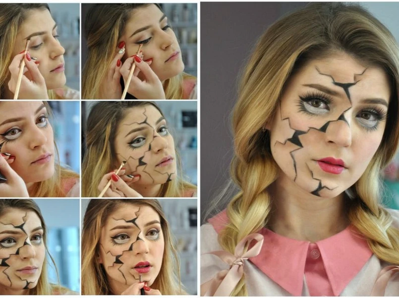 4 Z tej stylizacji najbardziej ucieszą się entuzjaści czarnego humoru. Komiksowy makijaż opiera się głównie na mocnym wykonturowaniu twarzy i podkreśleniu wszystkich jej linii. Oczy ozdób czarną kredką, dorysuj kilka kropek na twarzy, nawiązując tym samym do pop artu i obowiązkowo – dodaj do włosów kolorowy akcent, lub załóż perukę. Komiksowe stylizacje dzięki efektownemu i łatwemu wykonaniu, mają szansę stać się hitem tegorocznych imprez halloweenowych.