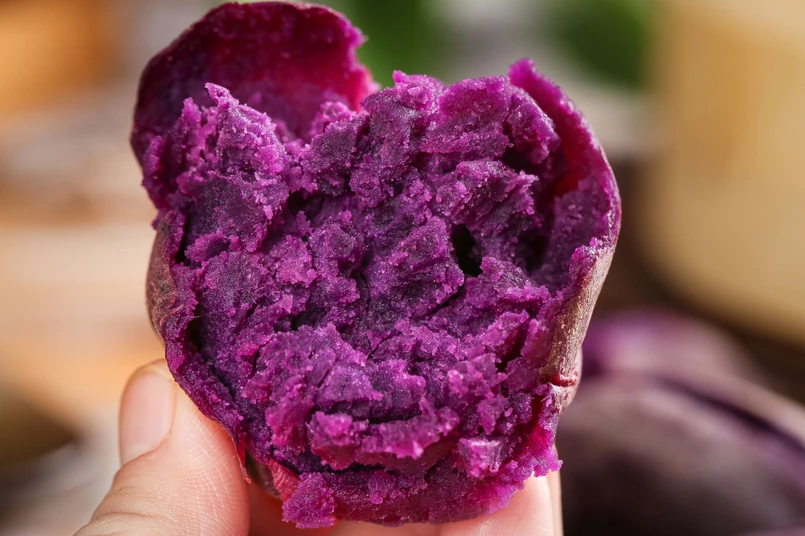 Chodzi bataty, zarówno te pomarańczowe, jak i fioletowe. Jedne i drugie zawierają błonnik rozpuszczalny i nierozpuszczalny. Dzięki temu działają wielotorowo na układ trawienny. Błonnik rozpuszczalny jest pożywką dla dobrych bakterii jelitowych i wspiera produkcję krótkołańcuchowych kwasów tłuszczowych. Związki te wzmacniają barierę jelitową i pomagają ograniczać stany zapalne.