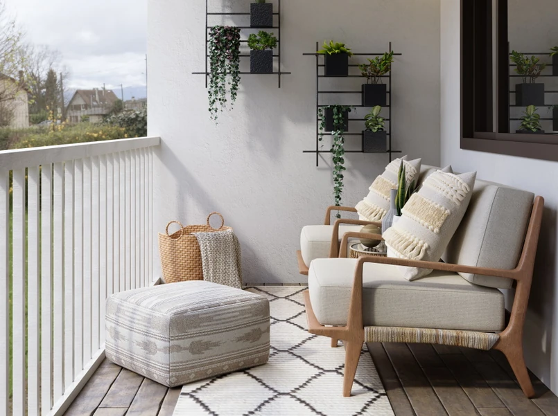 Nic tak nie relaksuje, jak przebywanie w otoczeniu zieleni. Balkon to idealne miejsce na rośliny, które mogą stać się jego główną ozdobą. Ładną aranżację można uzyskać za pomocą skrzyń i doniczek na balustradę lub podwieszanych półek. Warto zainwestować w rośliny, które wytrzymają kilka lat – bluszcz pospolity, barwinek pospolity, cyprysik groszkowy czy kiścień waltera. Jeśli z kolei nie masz ręki do roślin, wtedy możesz pokusić się o te sztuczne.