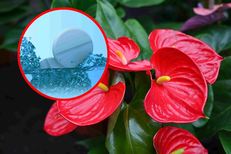 Dobrym sposobem na pobudzenie anturium do kwitnienia jest także znana nam witamina C, czyli kwas askorbinowy z apteki. Jak przygotować taką odżywkę? Otóż wlewamy do pojemnika 1 litr wody. Następnie wrzucamy do niego jedną tabletkę musującej witaminy C, która zawiera 1000 miligram kwasu askorbinowego. Czekamy aż tabletka się rozpuści. A następnie całość dokładnie mieszamy. Tak przygotowanym roztworem możemy podlać anturium.