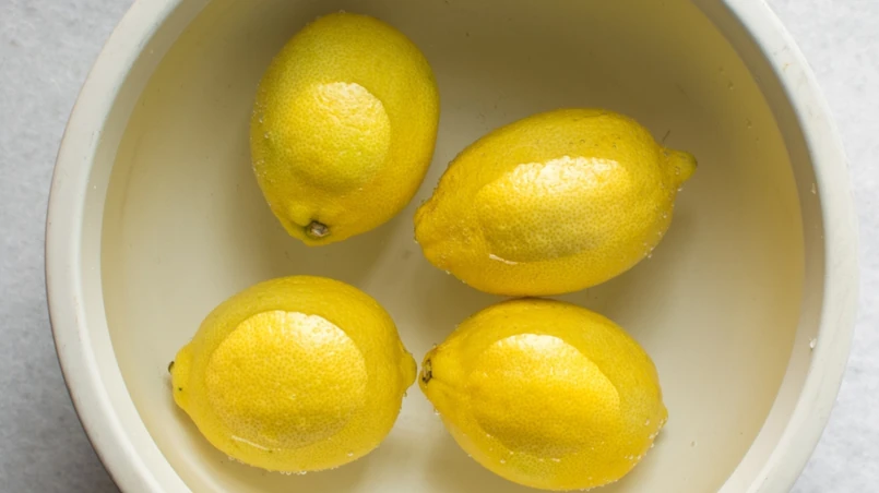 Umycie cytrusów wodą czy wyparzenie ich wrzątkiem nie wystarczą, by pozbyć się tych substancji z owoców. Najlepszy sposób na pozbycie pestycydów z owców, to zanurzenie ich w wodzie z sodą oczyszczoną. Soda oczyszczona zneutralizuje chemikalia, a także skutecznie oczyści skórki owoców. Aby przygotować środek na pozbycie się pestycydów, potrzebujesz 1 litra wody oraz 1 łyżki sody oczyszczonej. Wymieszaj sodę oczyszczoną w wodzie o temperaturze pokojowej. Najpierw wypłucz owoce pod bieżącą wodą, a następnie zanurz je w roztworze sody oczyszczonej na 15 minut. Następnie wyjmij owoce z roztworu i jeszcze raz opłucz pod bieżącą wodą. Tak oczyszczone owoce są gotowe do spożycia.